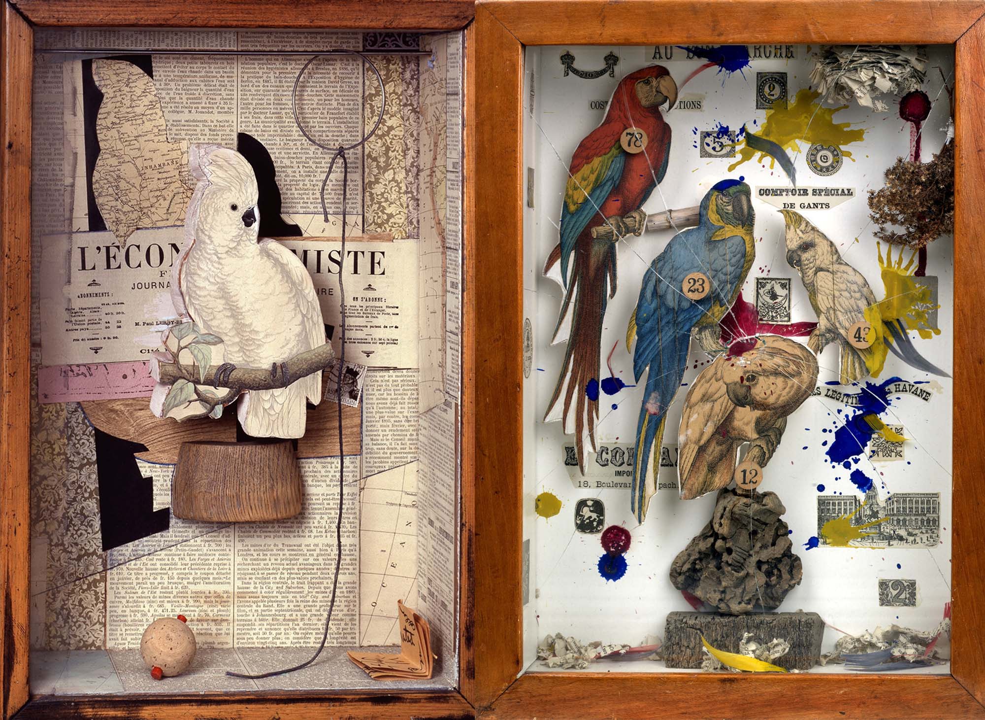 The cabinet by Ricksecker reminded me of dioramas and assemblage art—everything has its place, everything in its place. Specifically, I was reminded of Joseph Cornell, a self-taught American visual artist and filmmaker who pioneered the art of assemblage, arranging eclectic specimens of photos and knickknacks in glass-pane shadow boxes. Cornell’s collages were multifaceted in their influence, a visually simple constructivist take mixed with the fantastical compositions of surrealism. An interesting fact about his assemblage work is that despite its “worldly” air, Cornell almost never left his home state of New York. The Ricksecker curiosity cabinet, to me, feels like a precursor to Cornell’s assemblage work, as if Cornell somehow time-traveled back to art-direct the process of constructing Ricksecker’s gift. This celebration of Coleoptera hints at both constructivism and surrealism; I find the similarity fascinating!